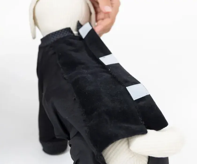 背中合わせのデザインで、足の動きが制限されるシニア犬でも着脱が容易です。