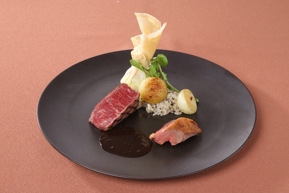 肉料理 いわて短角和牛フィレと和牛サーロインのグリエ トリュフのリゾットと共に