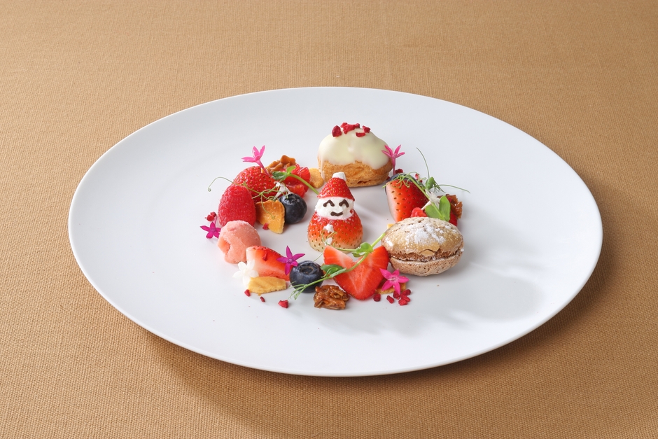 今回は、「NOEL A」・「NOEL B」の2つのコースからお選びいただきます。伝統的なフレンチの技法を用い、素材そのものの良さを感じていただけるよう丁寧に時間をかけて調理したお料理を、カジュアルなコーススタイルでお楽しみいただけます。両コースともオードブルにはじっくりマリネした蝦夷鹿を低温調理で仕上げた「鹿の低温調理 ビーツの香り」、スープには「フォアグラと和牛のポトフ」をご用意。「NOEL A」は魚料理に平目やエビを使用し、メインディッシュにはいわて短角和牛を、また「NOEL B」の魚料理にはオマールエビや甘鯛、メインディッシュには地元京都産のフィレ肉やフランス産のピジョンをご提供いたします。