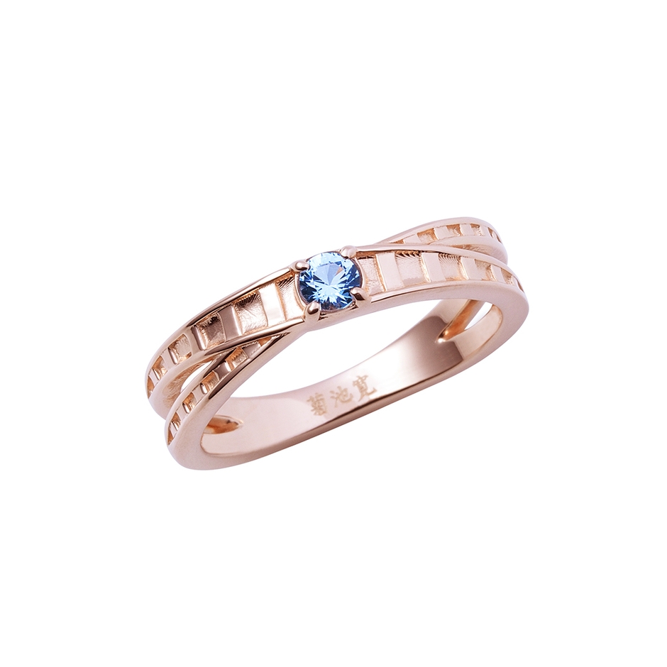 ピンクゴールドコーティングを施した表面にはイメージカラーストーン、