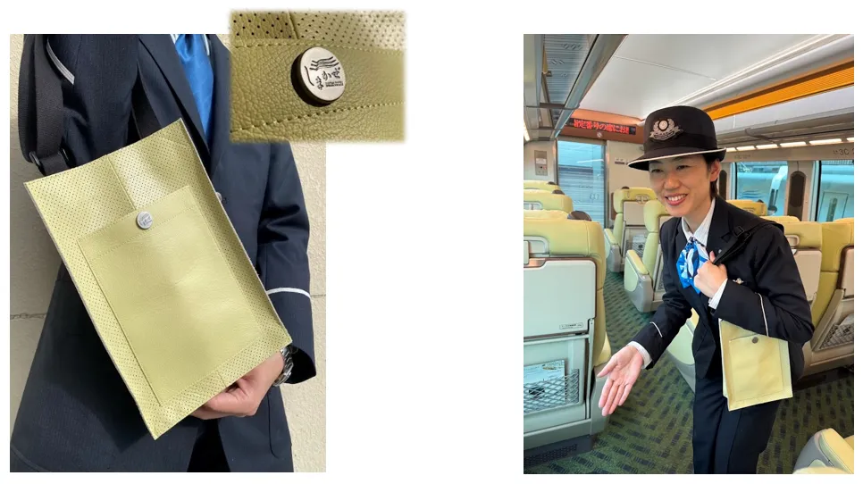 近鉄では、12月1日(日)に、観光特急「しまかぜ」(以下、「しまかぜ」)に乗務する車掌が、車内巡視時に使用するカバンを一新します。なお、このカバンは、「しまかぜ」のプレミアムシートで実際に使用されていた皮革を再利用して製作しています。