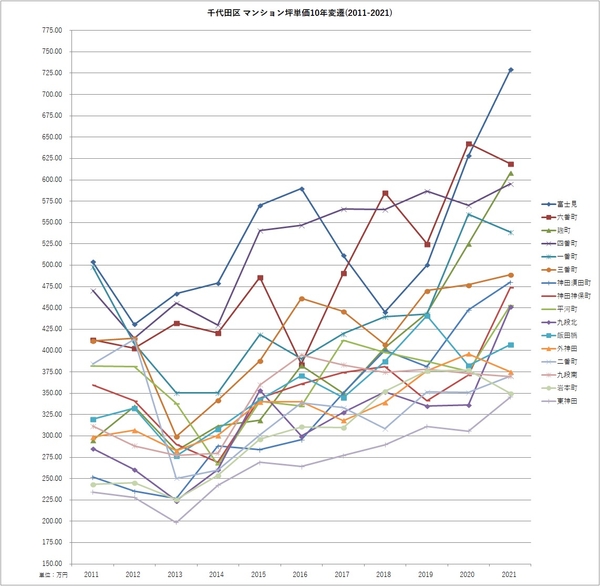 ※各区での10年の変遷については、当社コーポレートサイト内の下記PDF資料に坪単価の推移とグラフを掲載しておりますので、ご参照ください。