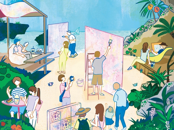 圧倒的な絶景とスケールを誇る海カフェ「星野リゾート バンタカフェ」では、2021年4月10日から5月9日に「海辺のアートフェスティバル」を開催します。次世代の沖縄カルチャーを牽引する、沖縄生まれ・沖縄育ちのアーティストがバンタカフェに集結し、彼らの作品で敷地内の各所を飾るほか、参加者はライブペイントやワークショップで作品の魅力が体験できます。海に臨む開放的な施設の特徴を活かし、密を避けながら楽しめるイベントです。
