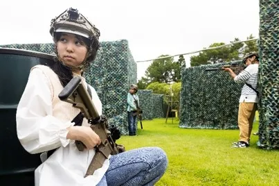 「志摩グリーンアドベンチャー」の人気アトラクションの一つである「レーザーバトル」は、赤外線システムを使用した日本初(※)の屋外型サバイバルゲームであり、多くのお客様にご好評をいただいております。