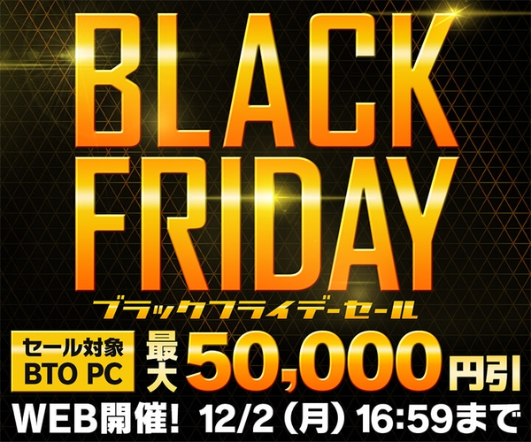 パソコン工房WEBサイト、セール対象BTOパソコンが最大50,000円引の『ブラックフライデーセール』開催中