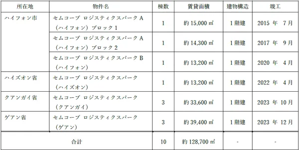 本物件は2025年秋頃の竣工を目指してまいりますが、竣工すればセムコープ インフラ サービス社を通じて運営する物流倉庫は、ベトナム北部の5棟(ハイフォン市内の4棟及びハイズオン省内の1棟)と中部の6棟(クアンガイ省内の3棟、ゲアン省内の3棟)を合わせて、計11棟・総賃貸面積約15万平方メートルとなります。