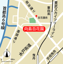 都営バス 亀戸-日暮里(里22)「百花園前」下車 徒歩3分