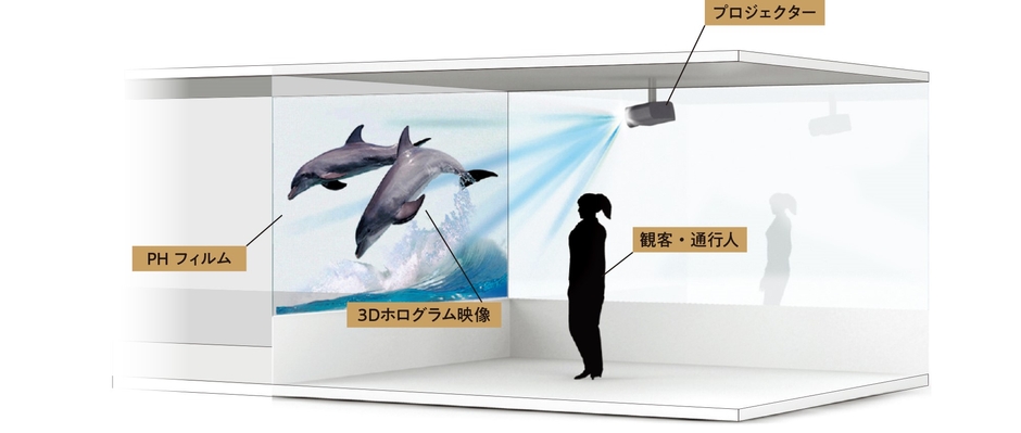 ブランジスタソリューションとネクシィーズ・ワンダーウォールは業務提携し、進化系3Dホログラム「PH (Projected Hologram)」技術を用いた映像演出サービスを制作・提供しています。リアルな立体映像を投影する「ワンダースクリーン」と「ワンダーフィルム」を既存設備に貼るだけで大型施設やイベント会場はもちろん、レストランやショップといった中小規模の事業者でも、簡単に導入できる点が特長です。