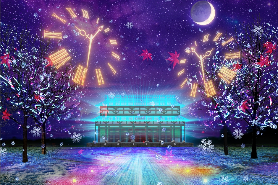 ネクシィーズ・ワンダーウォールの藤原が3Dホログラムの制作や演出、統括を担当しております。3Dホログラムとプロジェクションマッピングにより、現在は跡地となっている空間で、多賀城正殿を甦らせます。時を遡り、四季をまたぎ、徐々に当時の姿が浮かび上がる光景を、壮大な音楽とともにお楽しみいただける、ナイトコンテンツです。3Dホログラムにより、当時の「多賀城正殿」建物を体感できる、特別な夜をお過ごしください。