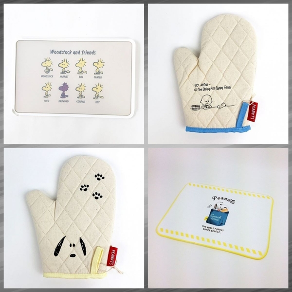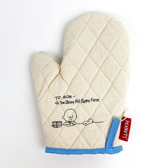ミトンはもう1種類ありますよ。こちらはチャーリーブラウンとスヌーピーが描かれれていますね。母へ向けた手紙を書いているチャーリーと、テーブルに顔を乗っけているスヌーピーが何とも言えない可愛らしさを演出しています♥