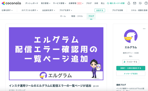 インスタ自動化ツール「エルグラム」の機能や料金、アップデート情報などを紹介するブログをココナラで開設します。
