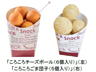 園内のテイクアウトショップ「グリーンリーフ」ではテーマの転がるにちなんだ丸いフード「ころころチーズボール」と「ころころごま団子」のテイクアウト販売を実施いたします。小腹が空いた時にご利用いただけます。