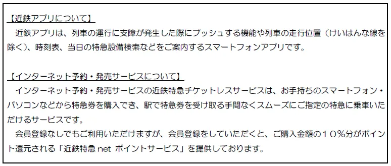 (1) 期間中に近鉄アプリの「特急空席検索・購入(運行情報・クーポンあり)」から対象列車を選択時に表示される「受け取る(運行情報・クーポン)」を選択してインターネット予約・発売サービスWEB サイトで特急券を購入