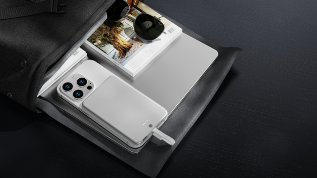 スーツの内ポケットに詰める薄型設計で、会議前の充電もスムーズに。