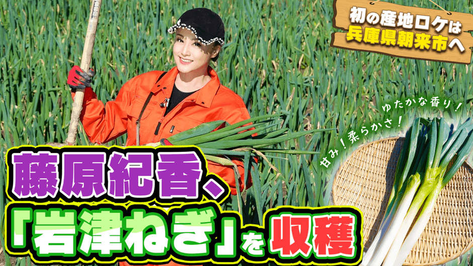 配信タイトル:藤原紀香が兵庫県朝来市で初の産地ロケへ!独特の甘みと柔らかさの"岩津ねぎ"を大自然の中でいただきます!