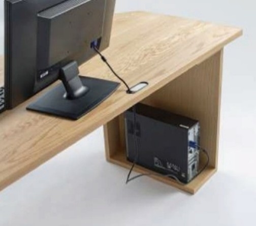 診察デスクの脚部は、雑然と見えがちなPC機器類を自然に隠すことができ、落ち着きのある印象にします。