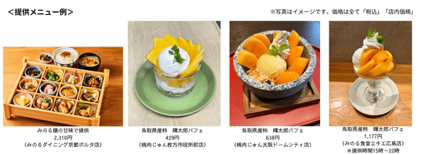 フェアでは、「輝太郎」のなめらかな食感と上品な甘さを楽しんでいただけるよう果肉を贅沢に使用したパフェ等を提供します。