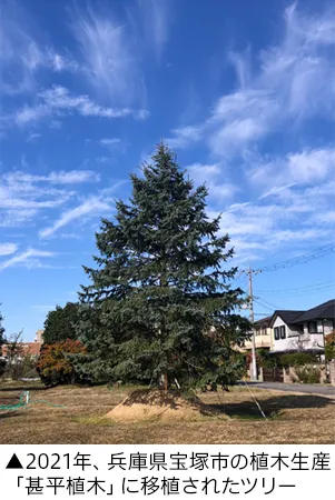 2021年、役目を終えたツリーは大阪府から日本三大植木産地の1つとして知られる兵庫県宝塚市へ。