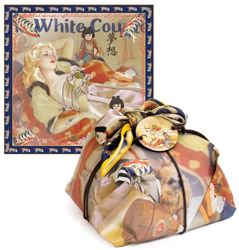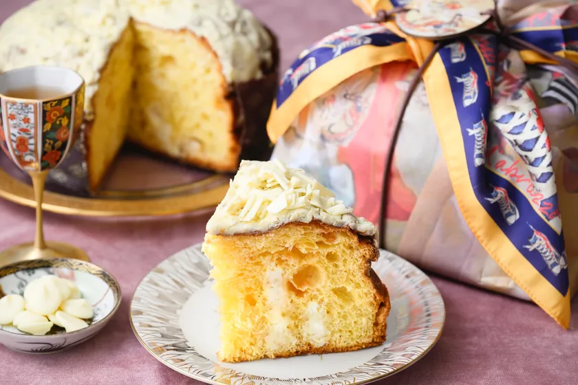 高級パスタブランド「ルスティケーラ・ダブルッツォ」が展開する2024年リミテッドエディションは、「スカーフ付きホワイトチョコレートのプレミアムパネットーネ」