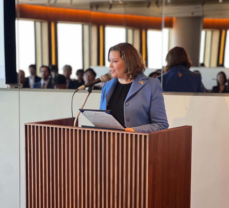 開会の挨拶では、在日コロンビア大使館のアンヘラ・ドゥラン臨時代理大使が登壇しました。同氏は、すでに成果を上げている両国間の協力の重要性に触れ、この関係が今後も双方にとって有益であり続けることを強調しました。