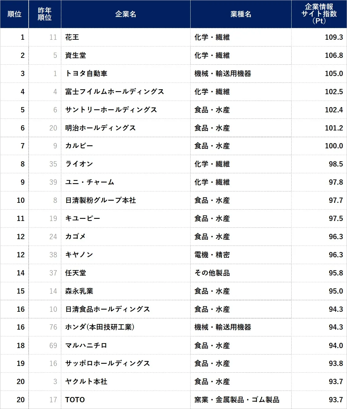 その他、上位には食品・水産、化学・繊維業界の企業が多く並びました。