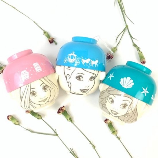 いずれも、茶碗にプリンセスたちの顔がデザインされていて、汁椀にはそれぞれのモチーフがデザインされています。