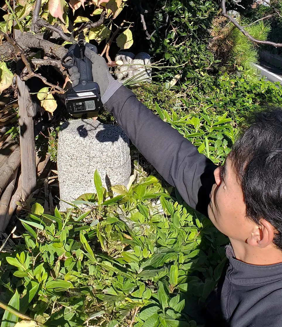 果樹農業における手ばさみを使った整枝剪定作業は、果物づくりに欠かせない作業ですが、作業量が多いために腕や手首を痛めるなど、身体へ大きな負担がかかっていました。また、造園業においても、堅い枯れ枝の剪定や、切り落とした枝の量を減らす切断作業は、大きな負担となり悩みの一つでした。
