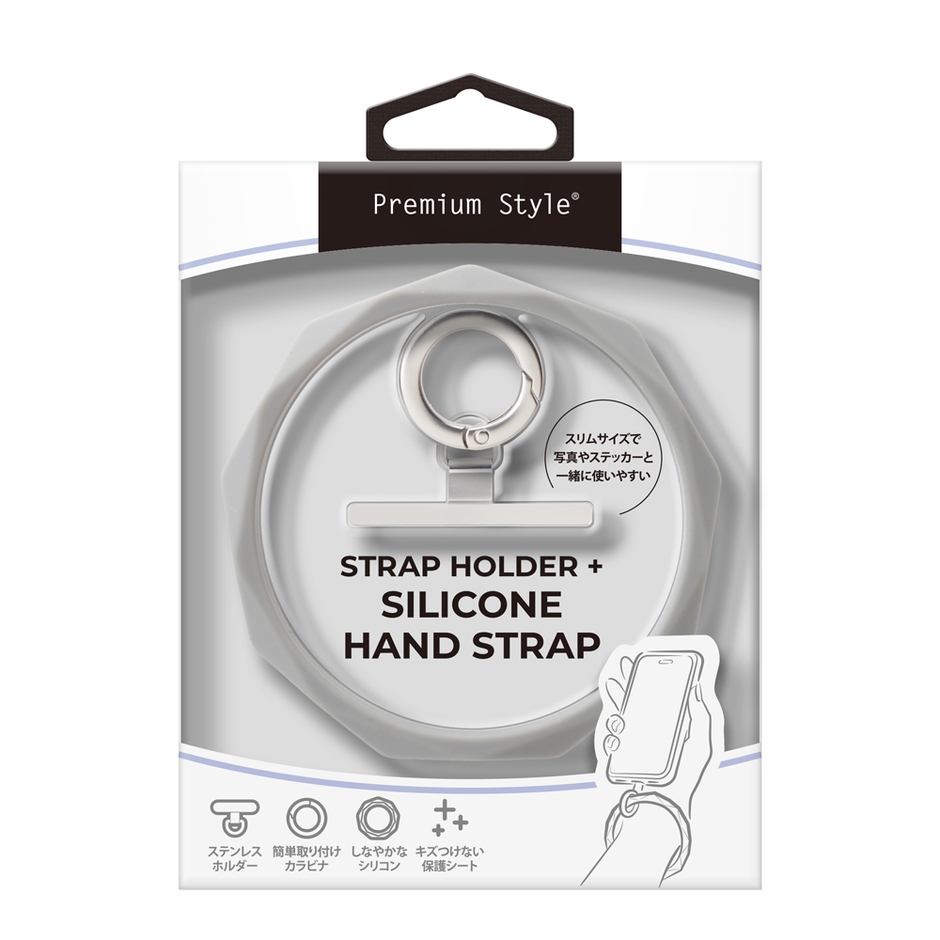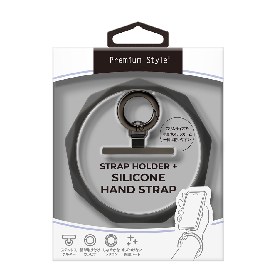 ストラップホールが無くてもストラップを容易に取付けできるメタルストラップホルダーがセットになったシリコンリングハンドストラップを、株式会社PGAが12月13日より新発売