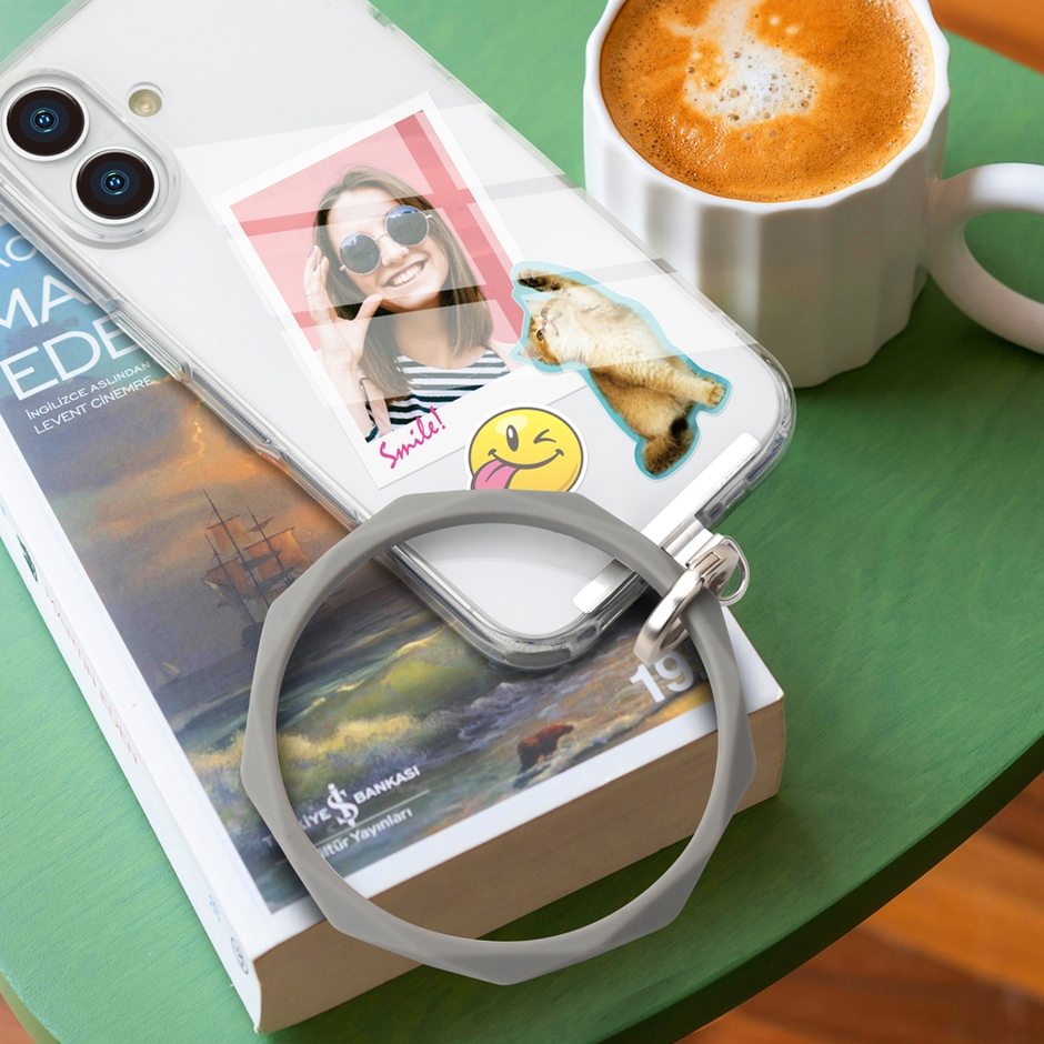 しなやかなシリコン素材のハンドストラップで手首や腕から提げて持ち歩ける為、両手がふさがずスマートフォンの操作ができ、落下防止にも役立ちます。