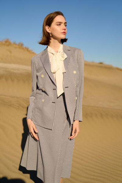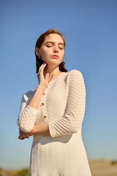 内面から滲み出る「艶感」を持つSENSUALTYな女性に向けて、快適性とセンシュアリティーを表現したコレクションは、ソフトな軽さとサスティナブルを意識し、綿・麻など天然混素材と適度な艶感を持つ素材を使用したクリーンでフェミニンそしてこだわったフォルムで構成したワードローブを展開しております。