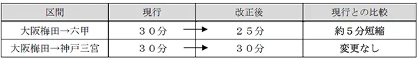 ・神戸三宮発大阪梅田ゆき快速を、現行の通勤急行と比較して2本増発します。