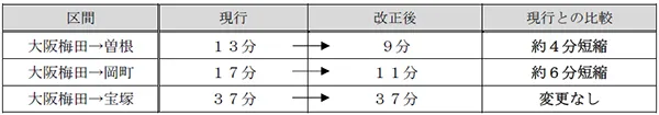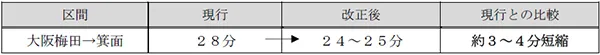 ・大阪梅田から曽根までは約4分、大阪梅田から岡町までは約6分、所要時分を短縮します。