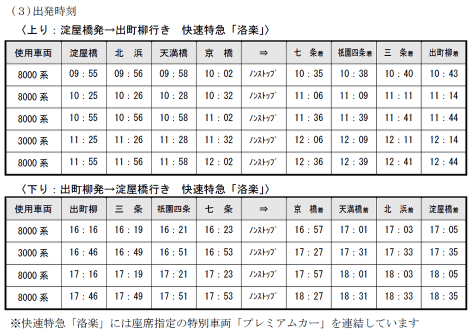 (2)停車駅:淀屋橋、北浜、天満橋、京橋、七条、祇󠄀園四条、三条、出町柳