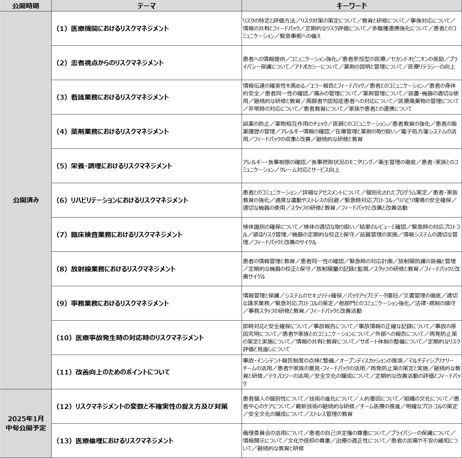 ●全部で13項目119本の動画があり、2024年12月時点で11項目101本が公開されています。今後順次公開し、2025年1月中旬までに全13項目119本の公開を予定しております。