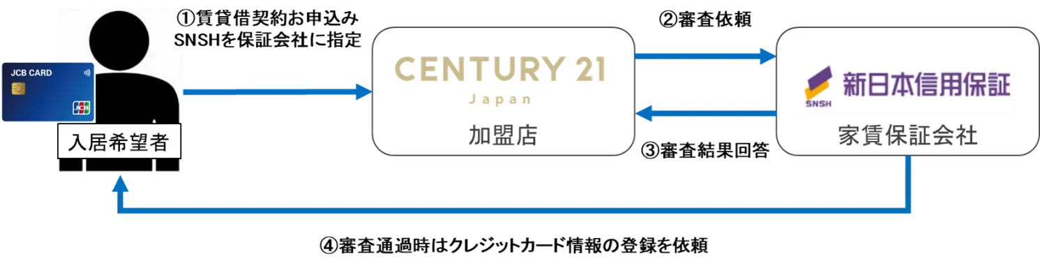 株式会社センチュリー21・ジャパン(本社:東京都港区、代表取締役社長:園田 陽一、以下:センチュリー21)、SBペイメントサービス株式会社(本社:東京都港区、代表取締役社長 兼 CEO 榛葉 淳、以下:SBPS)、株式会社ジェーシービー (本社:東京都港区、代表取締役 兼 執行役員社長:二重 孝好、以下:JCB)、新日本信用保証株式会社(本社:東京都墨田区、代表取締役社長:徳丸 健一、以下:SNSH)は、賃貸物件の家賃のクレジットカード決済に向けた協業を開始いたしました。