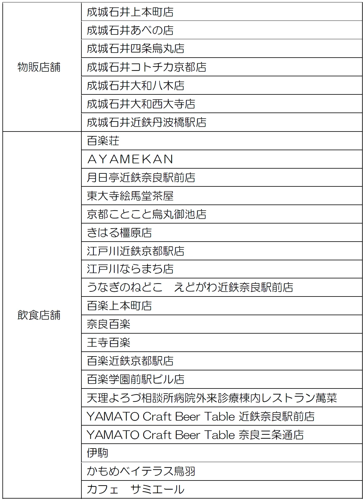・近鉄の駅ナカ等にある一部の近鉄グループの物販、飲食店舗(27店舗)(2025年1月8日(水)から)