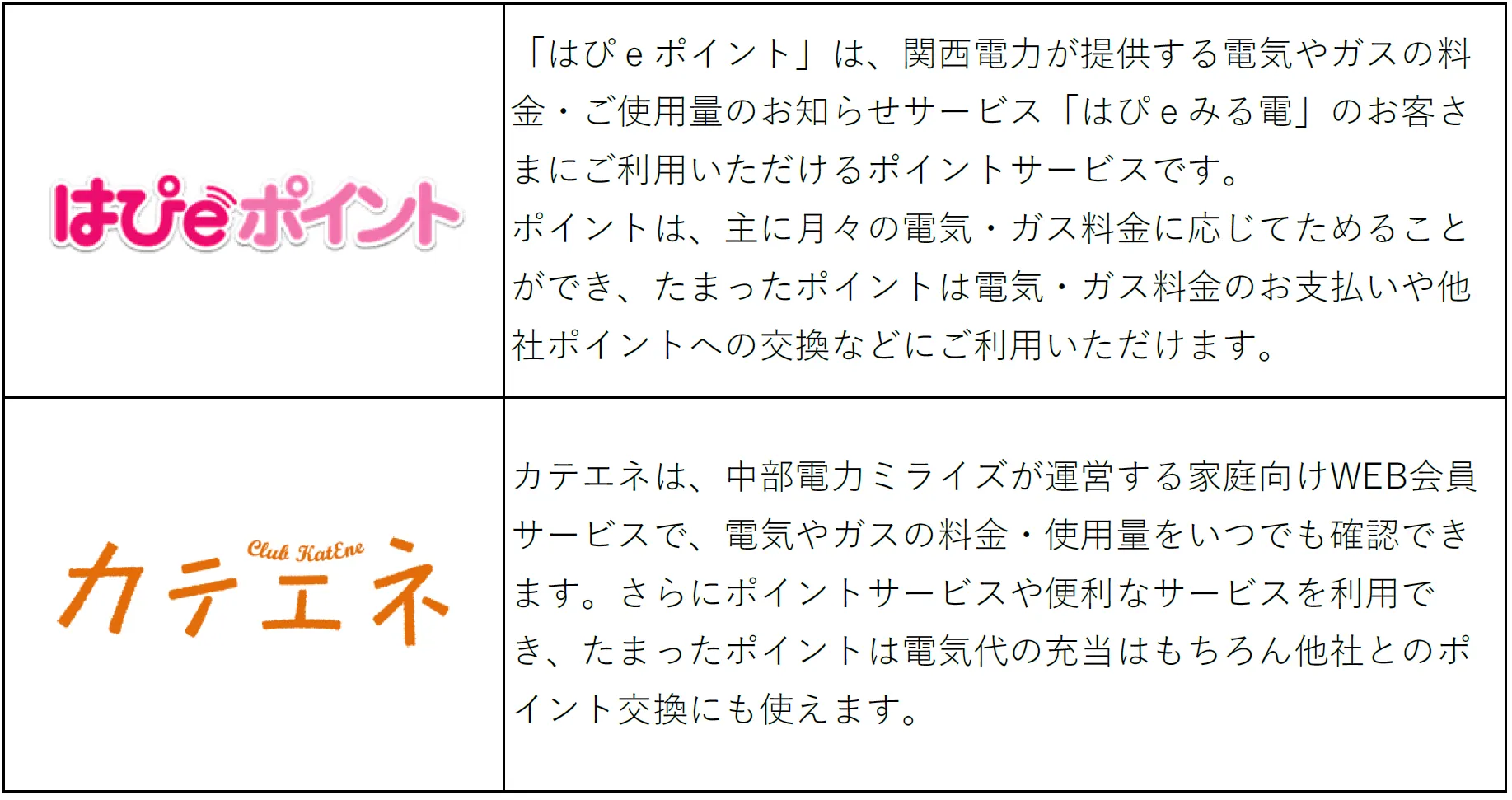 2024年12月18日(水)より、関西電力株式会社のはぴeポイントおよび中部電力ミライズ株式会社のカテエネポイントとの相互交換サービスを開始します。
