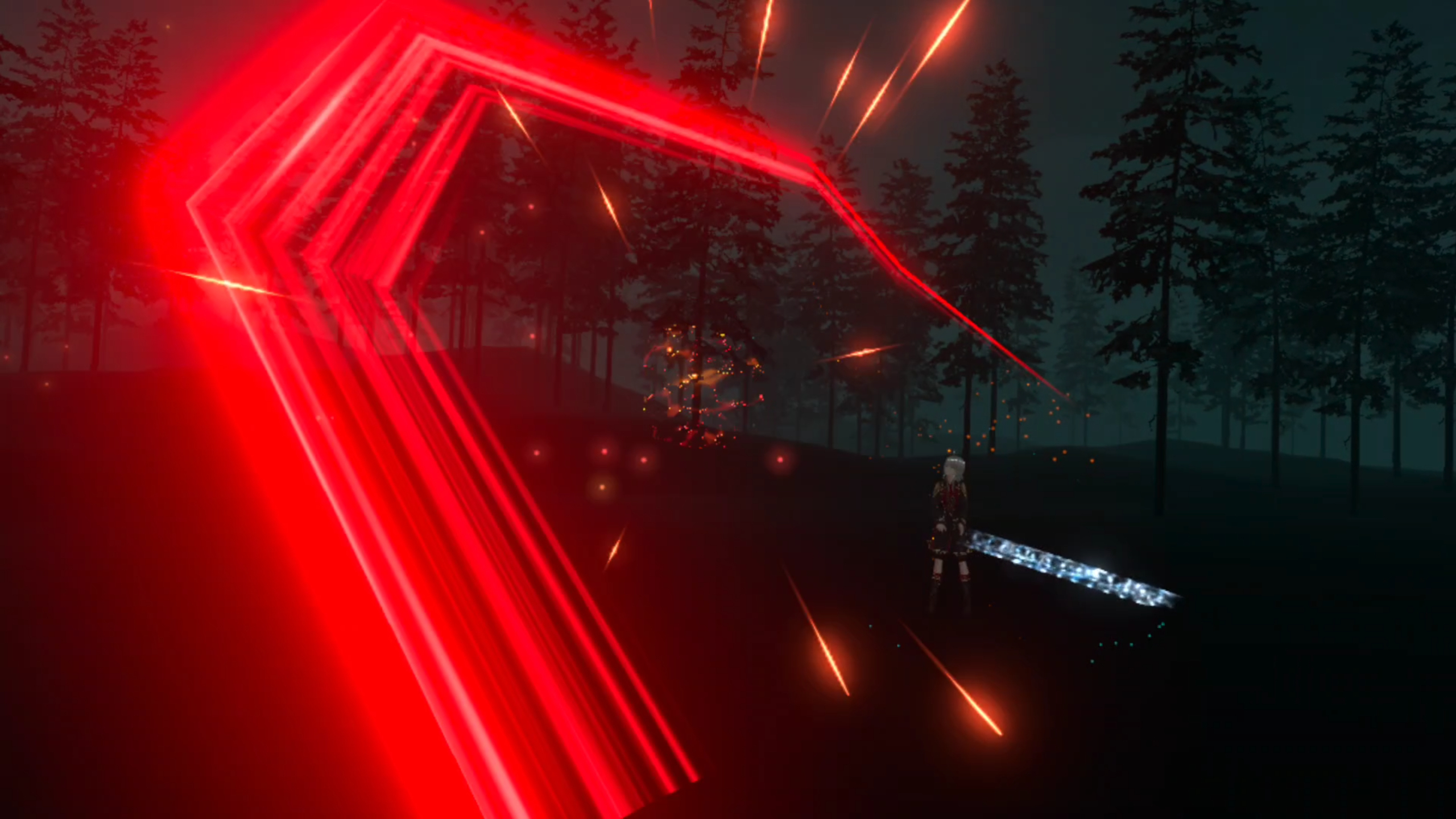 プレイヤーの使用する剣は、刃の向きや振る速度、腕の振りの大きさによって斬撃の威力が変わります。