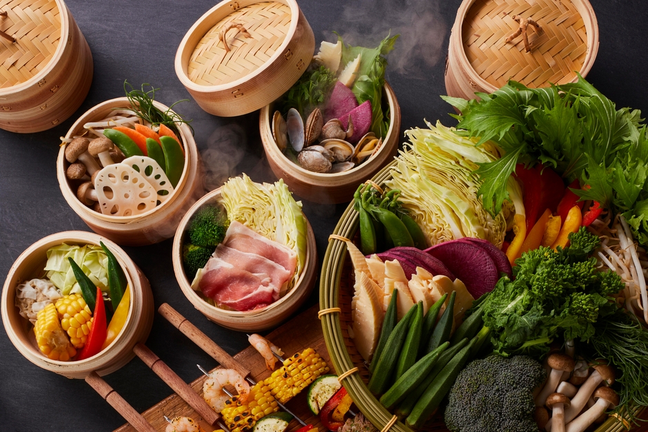 2025年のスタートを華やかに彩るスイーツ&ランチディナービュッフェは、多彩なアレンジの贅沢チョコレートスイーツをお楽しみいただけます。チョコレートと相性の良い、酸味のあるフルーツや香り高い茶葉を合わせたスイーツも幅広くラインナップ。さらに今回は、とろけるチョコレートを存分に堪能できるチョコレートファウンテンが登場。流れる濃厚チョコレートに、フルーツや焼き菓子をディップしながら味わえる体験型スイーツとして、大人から子供までお楽しみいただけます。また、和洋中のバラエティー豊かな料理メニューの中でも人気の「せいろ蒸し」は、冬の食材を豊富にご用意。食材本来の優しい味わいが楽しめる蒸し料理として、出来立てをお届けします。シェフが腕を振るうグルメの数々と、とろけるチョコレートスイーツで至福のひとときをお過ごしください。