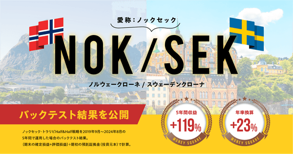「毎日が財産になる」をコーポレートスローガンに、中長期的な資産形成環境を提供する株式会社マネースクエア(本社:東京都港区、代表取締役会長兼社長:相葉 斉、以下「当社」)は、この度、「NOK/SEK、ノルウェークローネ/スウェーデンクローナ(愛称:ノックセック)」における5年間のバックテスト結果を掲載した特設ページを公開いたしましたので、お知らせいたします。