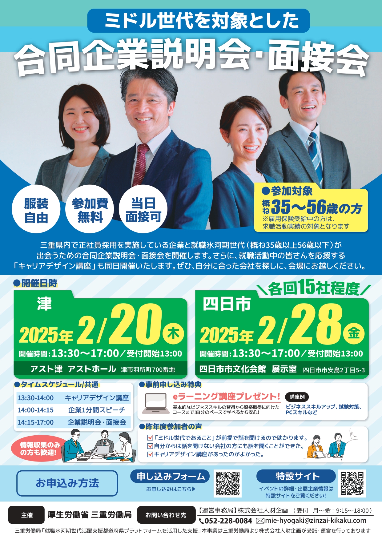 三重労働局主催、地元の企業と直接話せる機会 ミドル世代対象の合同企業説明会・面接会を開催!