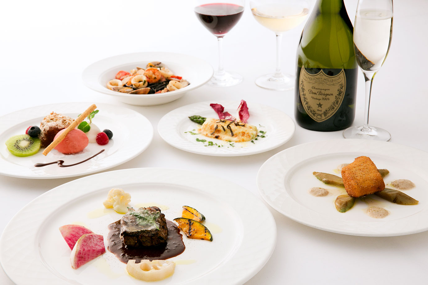 価格:ドン・ペリニヨン/赤ワイン/白ワイン お一人様各1杯付 10,000円(税込、サービス料10%別)
