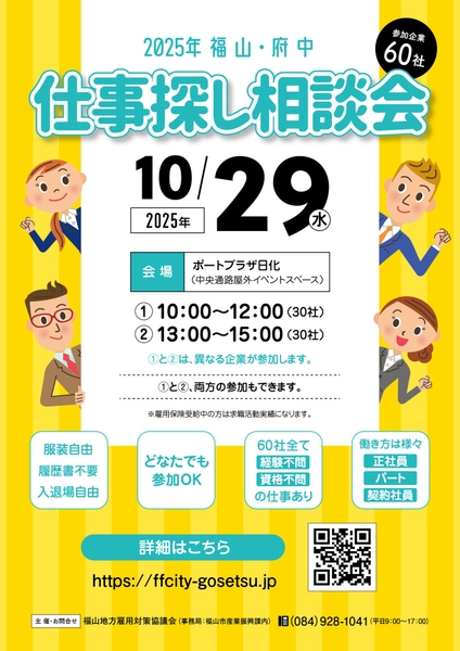 2025年9月18日 14:55福山・府中の60社が参加する仕事探し相談会を開催します