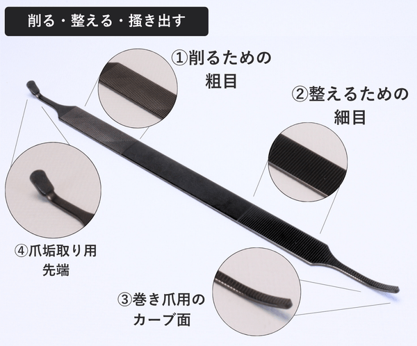 ・爪垢取り:0.5mmのリフター形状で清潔な爪まわりを実現