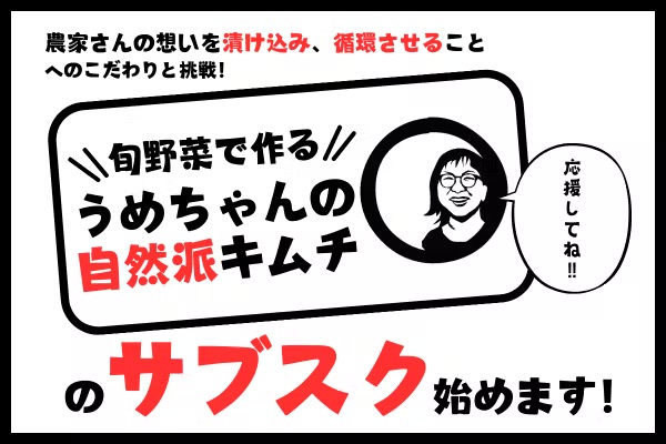 プロジェクト名: 「旬野菜で作る うめちゃんの自然派キムチ」のサブスク始めます!