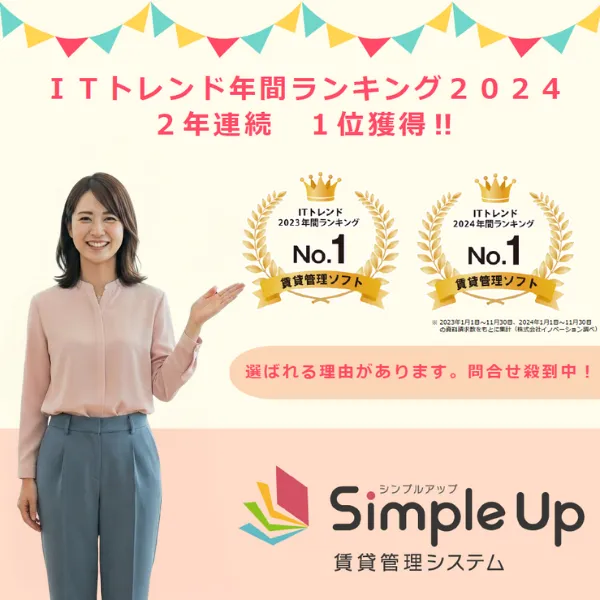Simple Up賃貸管理システムが 「ITトレンド年間ランキング2024」賃貸管理ソフト部門において 2年連続で第1位を獲得