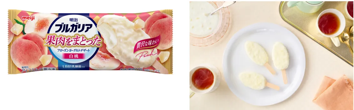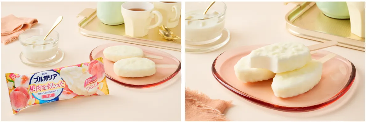 『明治ブルガリア 果肉をまとったフローズンヨーグルトデザート 白桃』全国のコンビニエンスストアで新発売! 累計出荷本数7500万本突破 「明治ブルガリア フローズンヨーグルトデザート」より、新商品登場! LB81乳酸菌使用 白桃果肉をまとったさっぱり、なめらかアイス