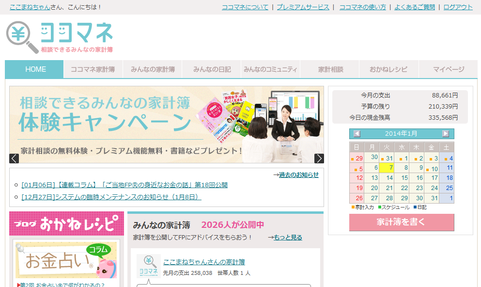 ココマネが『相談できるみんなの家計簿』としてリニューアル 2014年は家計簿をつけるだけから脱出、 家計簿を匿名で公開してお金のことをイロイロ相談しよう!