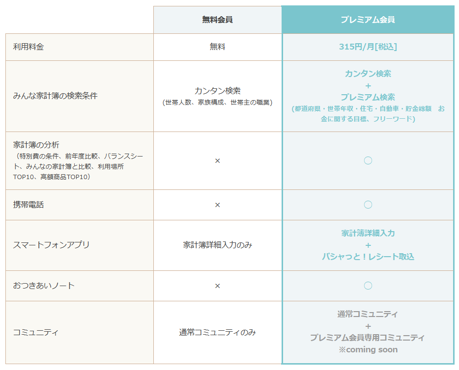 月額315円(税込)で、プレミアム会員に登録いただくと、ココマネで家計改善をしていただくための便利な機能をすべてご利用いただけます。