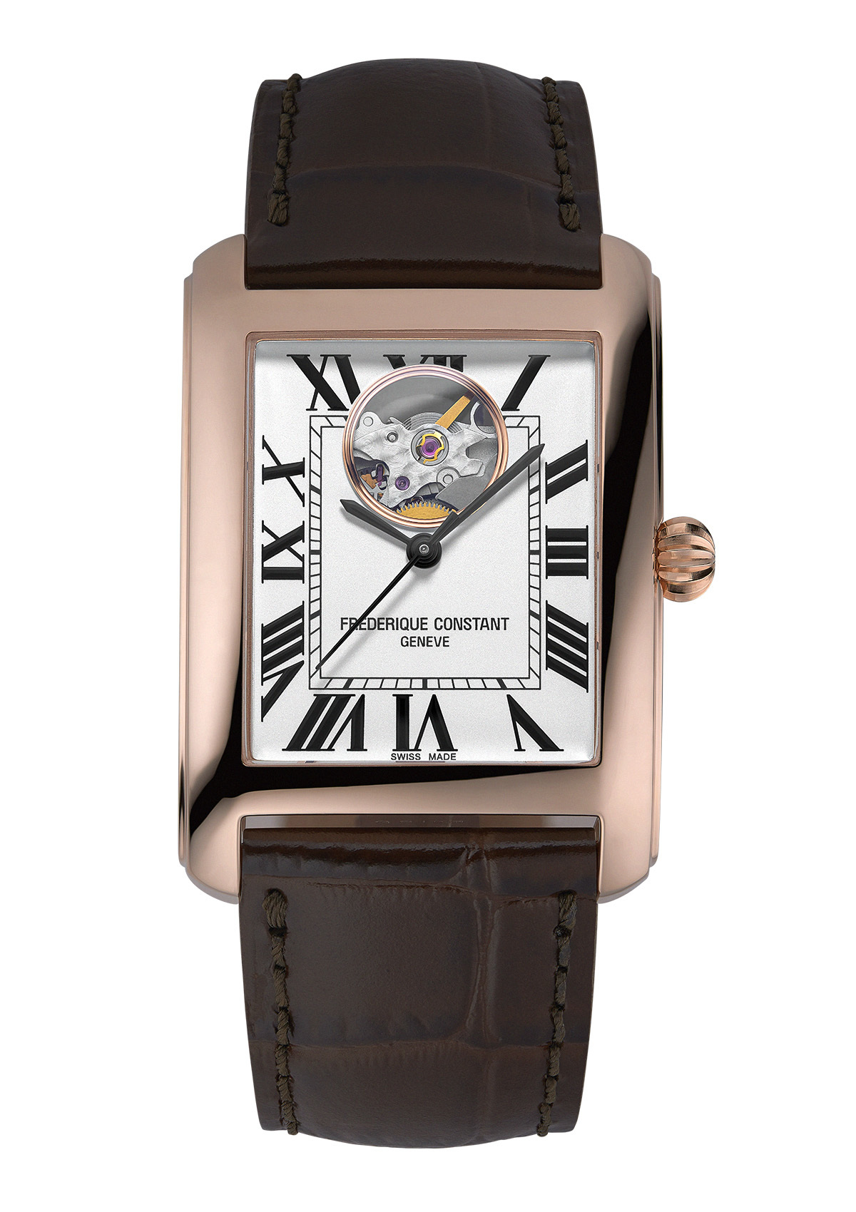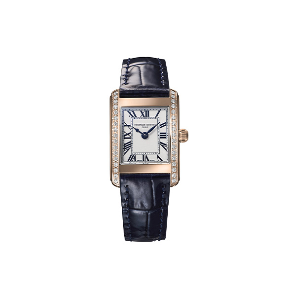 2005年に誕生したフレデリック・コンスタントのクラシック アールデココレクションのレクタンギュラーケースモデル。連続的な波模様のギョーシェ装飾の周囲にはマザーオブパールを配し、ブレゲ針やローマンインデックス、そしてコインエッジを用いたクラシカルデザイン。文字盤は優しいペールピンクと淡いブラウンのタンカラー。日々のパートナーとして、そして気品あふれるジュエリーウォッチとして一緒に時をすごせるタイムピースです。